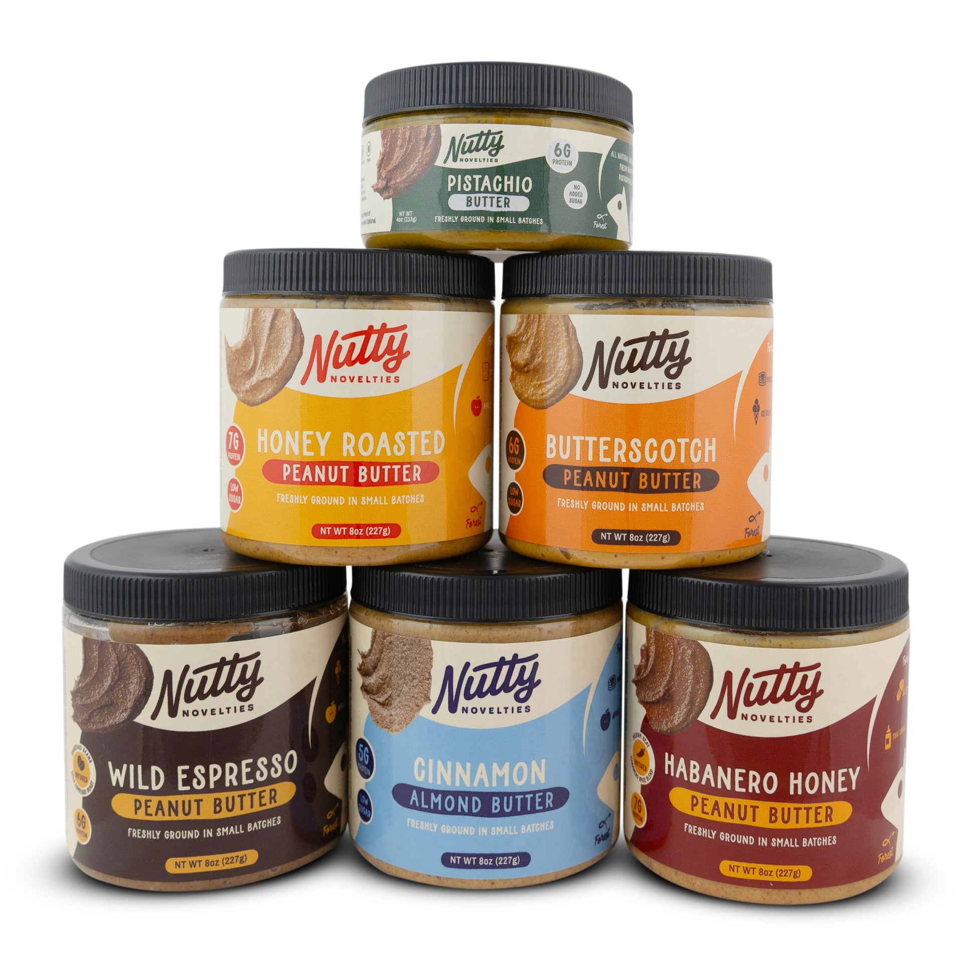 We know you love FREE SHIPPING just as much as we do! This is one of our pre-set bundles that ships for free since it’s a value just over $49. This one is 5 8oz jars plus a 4oz Pistachio Butter, all in different colors of the rainbow!
